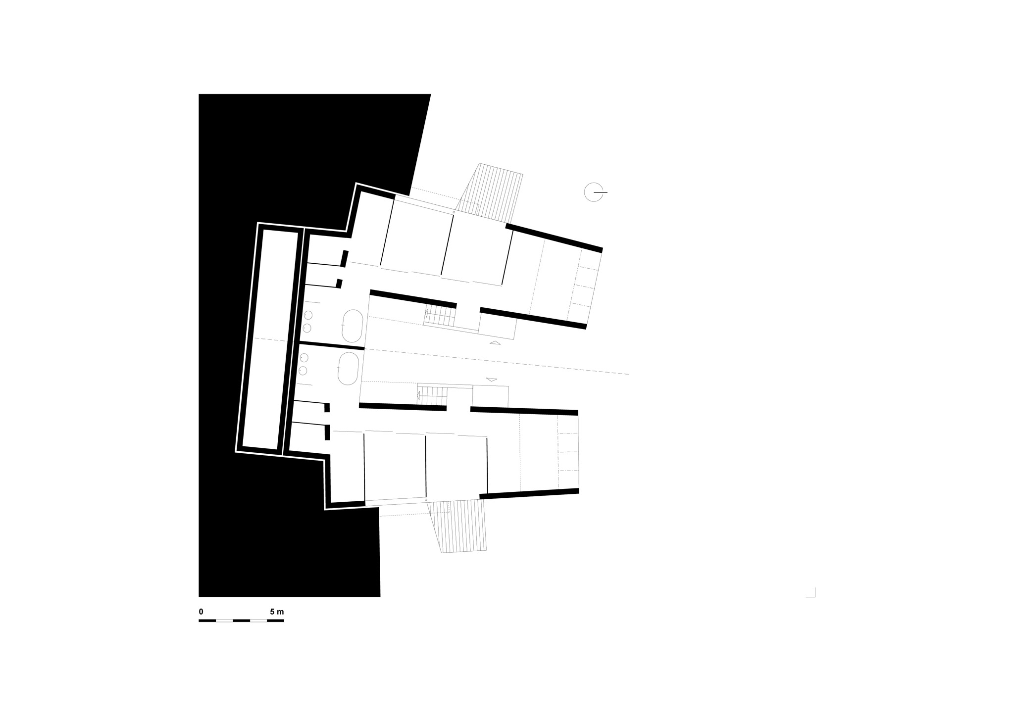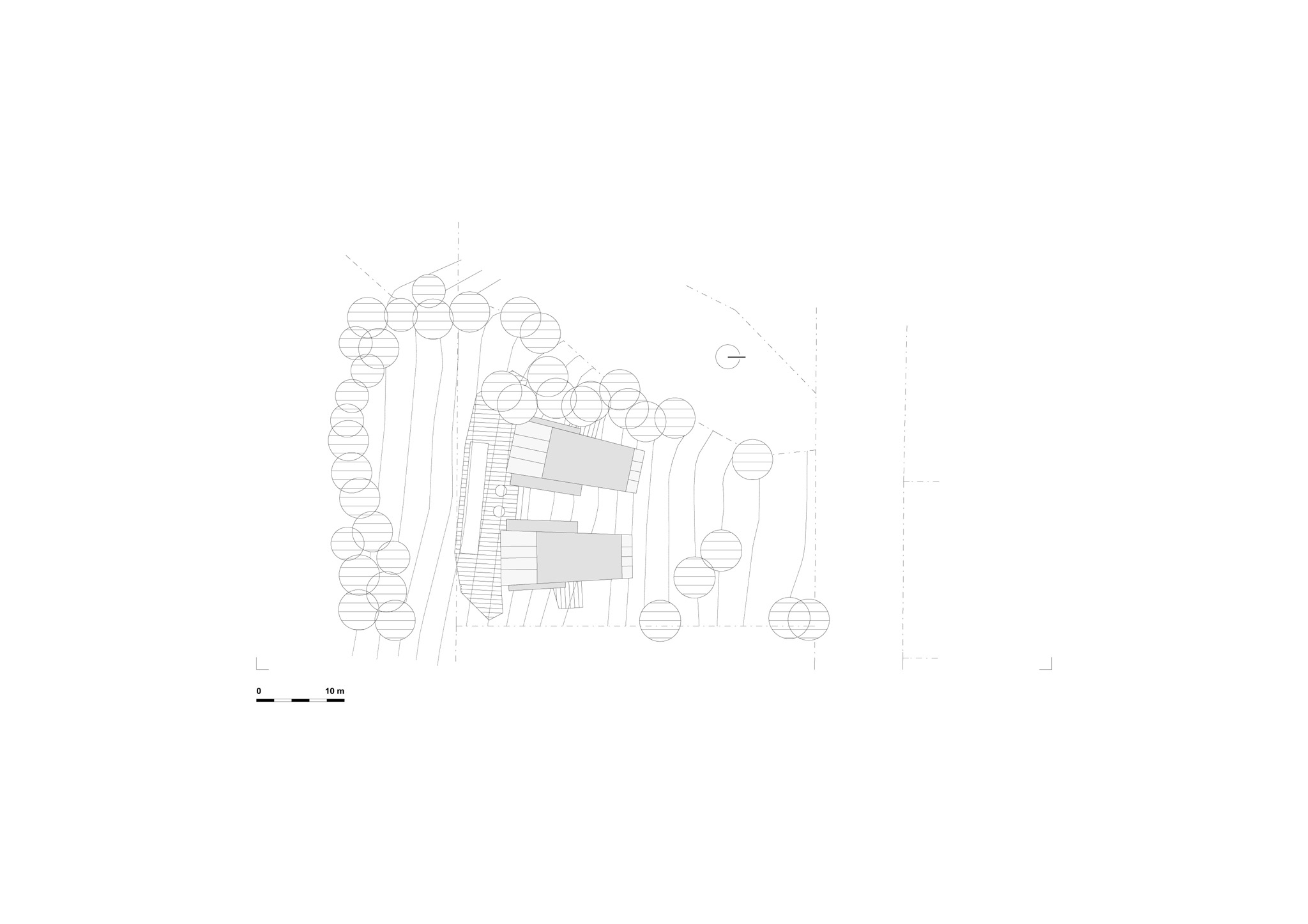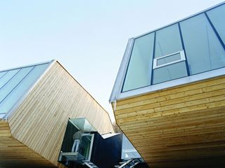 two houses for two sisters on a steep northern slope. in winter the sun hardly reaches the site.