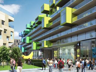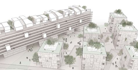 the so called "micro-lofts" are placed between the small apartments. residential units that are only slightly larger than a hotel room are targeted to such societal groups as students, single parents, etc. as an innovative aspect, these apartments can easily be added to the neighbouring apartments in the future.