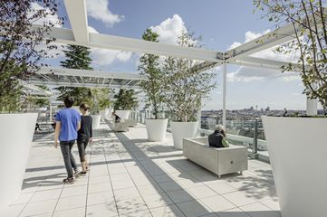 ikea already expressed their aspiration in the briefing: ‘we want to be a good neighbour.’ in the three-stage architectural competition, querkraft was able to succeed with a concept that goes beyond retail and creates genuine added value for the neighbourhood. lush green façades and a publicly accessible roof terrace invite people to spend time here - whether it's having a cup of coffee, relaxing or enjoying the view over the city. while the ikea retail area is located on the lower floors, the jo&joe hostel with 345 beds is located on the upper two floors. this versatile mix of uses creates a vibrant building that remains active 24/7. all these elements make the new ikea a really good neighbour.