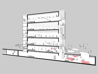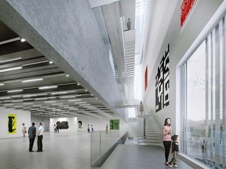 spatially, the gallery will be a flexibly configurable exhibition body that can handle a wide variety of exhibition content and future developments thanks to mobile partition walls. the arrangement of small rooms is just as possible as the use of open halls. the way through the exhibition is always a new experience, which is additionally reinforced by internal and external perspectives.
