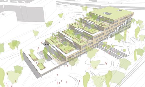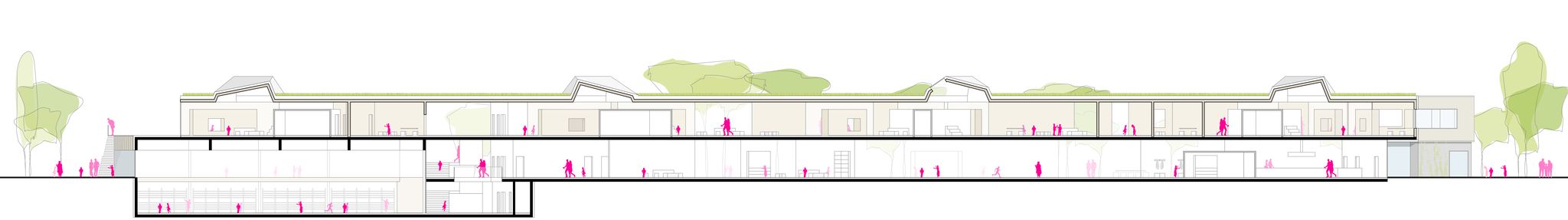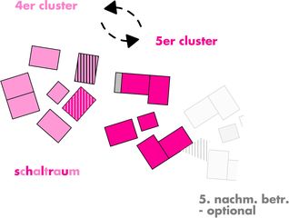 distribution and rotation of classrooms around a common center inside a cluster creates an identity-building structure with varied zoning, protected free spaces and diverse orientations.