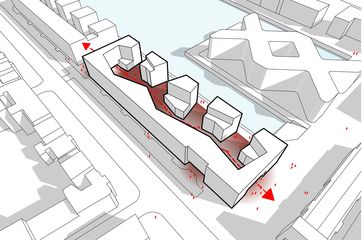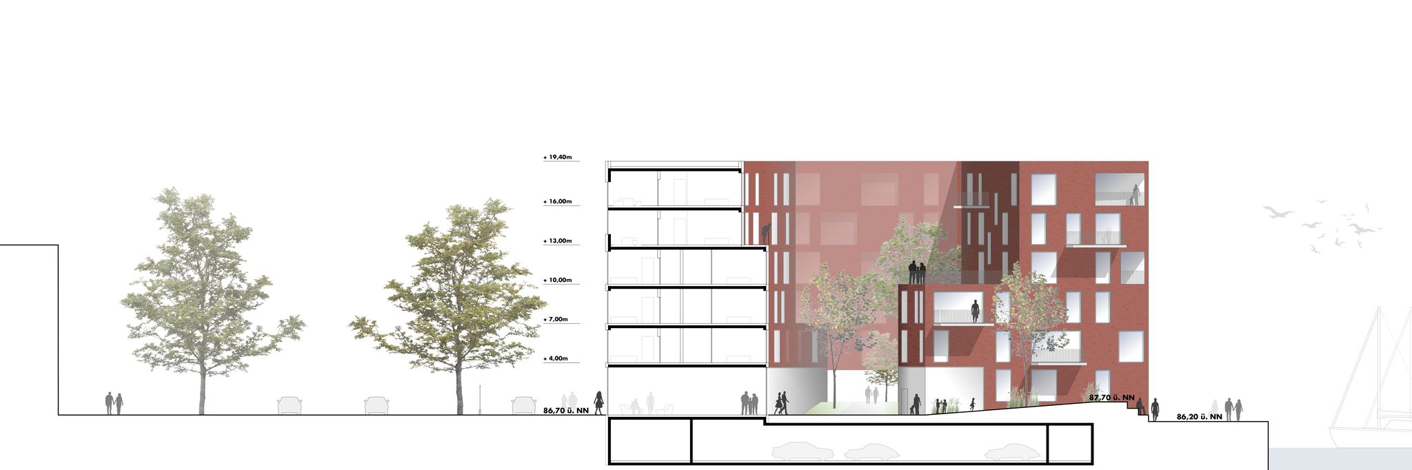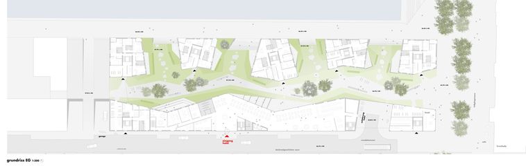 apartments (rental and owner-occupied) as well as a hotel with approx. 200 beds are to be built in a new city district at the mainz customs port. an urban, creative, functional and economical solution had to be found for this use.