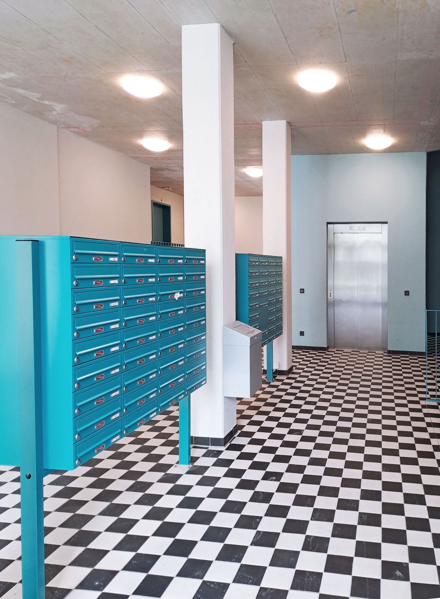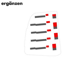das potential der bestände wird zum andocken der neubauten genutzt. die punktgebäude („pünktchen“) werden entlang der feuermauer im norden fertig gestellt, während die zeilenbauten („anton“) mittels der zubauten in ihrer struktur ergänzt und gestärkt werden. stiegenhäuser, kerne, allgemeinfläche und gemeinschaftsräume können mitgenutzt, erneuert, ergänzt und geteilt werden.