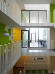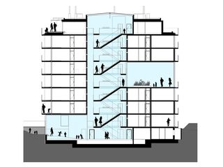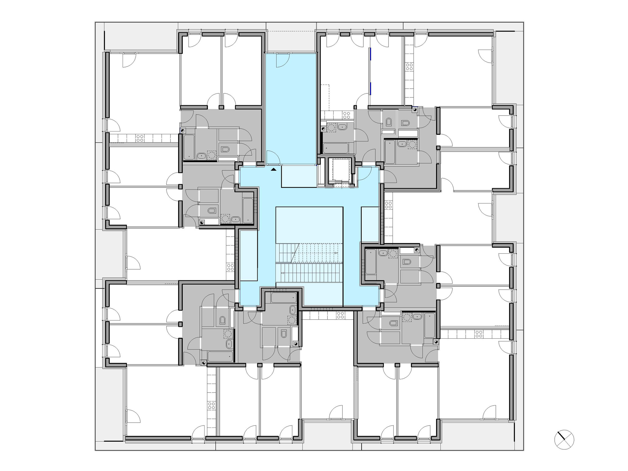 grosszügige, helle, innenliegende erschließung mit lichtschlitzen zu den küchen und bädern.