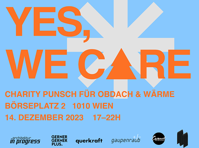 wir sammeln für die gute sache. aus diesem grund laden wir und unsere freund*innen von architektur in progress, gerner gerner plus, gaupenraub, caramel und mostlikely auch heuer wieder zum gemeinsamen get-together vor unserem büro am börseplatz ein. am donnerstag, den 14.12.2023 werden wir ab 17:00 uhr warme getränke ausschenken. dabei werden wir spenden zu gunsten der vinzi-gruppe sammeln.