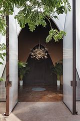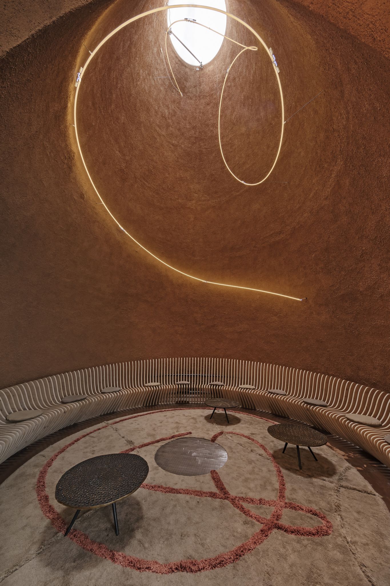 "die lounge erstreckt sich über drei der insgesammt 38 kegel, aus denen das gebäude zusammengesetzt ist. sie ist eine moderne interpretation des typisch arabischen majlis - ein ort des zusammensitzens.