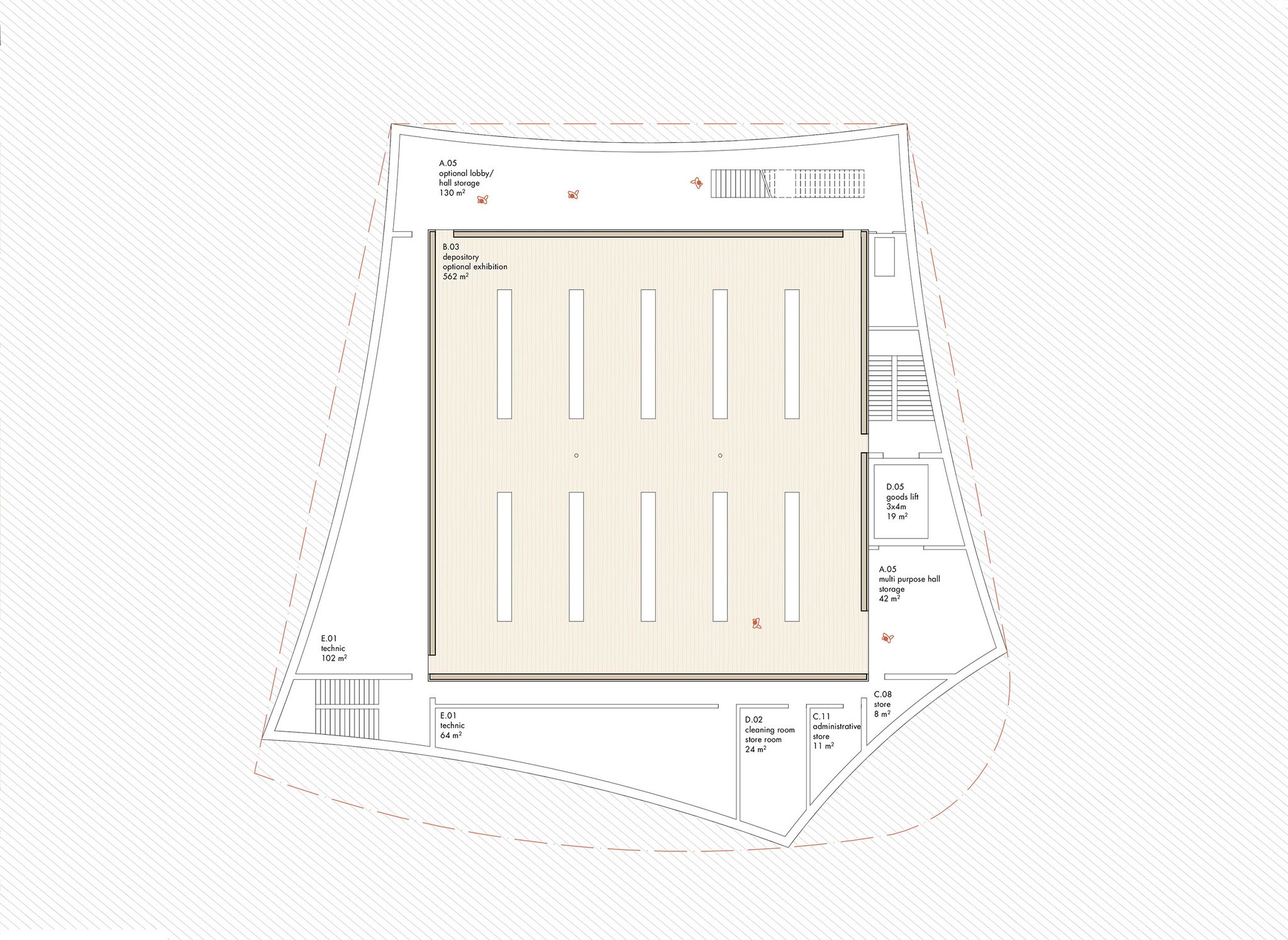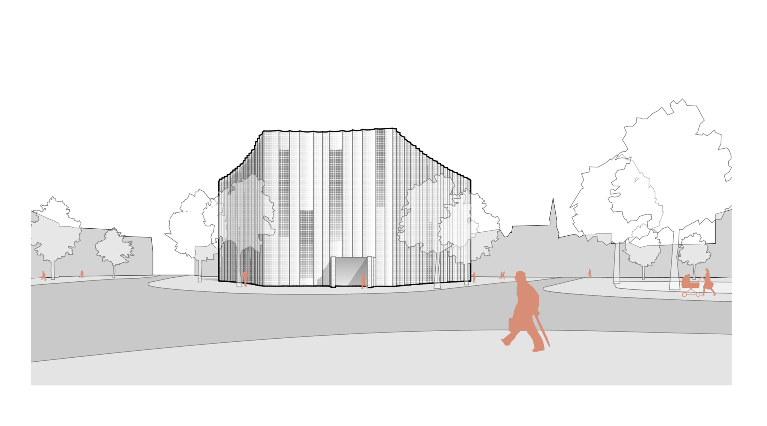 das neue museum integriert sich als eigenständiger baukörper in die parklandschaft und erhält durch seine geschwungene form eine prägnante präsenz. der zentrale ausstellungsbereich ist als flexibler, offener raum konzipiert, dessen geometrie und beleuchtung speziell für vielseitige kunstpräsentationen optimiert sind. diese gestaltung ermöglicht eine einfache anpassung des raumes an verschiedene ausstellungen und nutzungsszenarien.