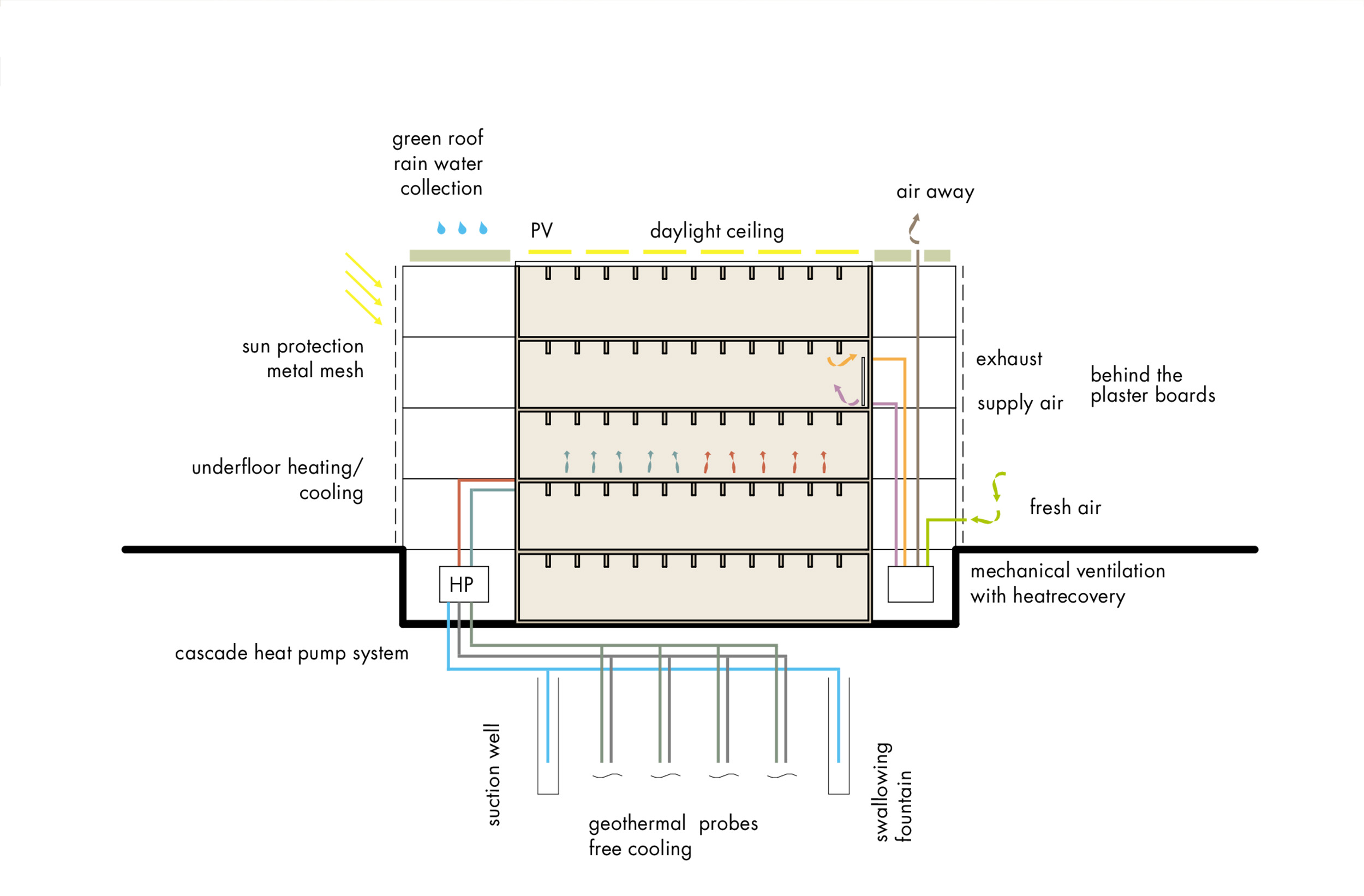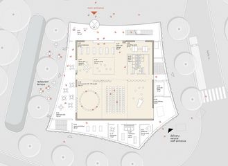 die außenhülle aus konkav geformtem metallgewebe sorgt für leichtigkeit und transparenz. der raum zwischen der inneren „schatulle“ und der äußeren fassade wird für lichtdurchflutete räume und großzügige erschließungsflächen genutzt, was das gebäude nicht nur funktional, sondern auch angenehm zugänglich macht. das großzügige foyer verbindet das museum mit dem umliegenden öffentlichen raum und bietet eine einladende schnittstelle zur stadt.