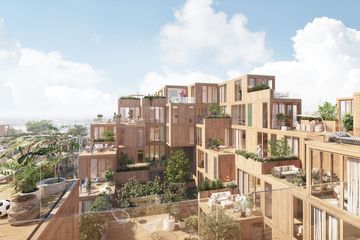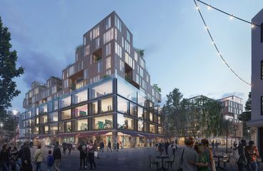 zudem integriert das neue quartier einen „stadtwald“ zwischen den baukörpern. er verbindet natur mit architektur, ist essentieller baustein für die verbesserung der aufenthaltsqualität, erbringt wichtige kühlleistung, verringert die schadstoffbelastung, erzeugt sauerstoff und senkt die gefühlte temperatur im baumschatten um 15°C°. die gehölze speichern rund 14,5t CO2 pro jahr. die schadstoffbelastung in der luft wird im jahr um 5t NO2 reduziert und etwa 3t pm10 feinstaub.