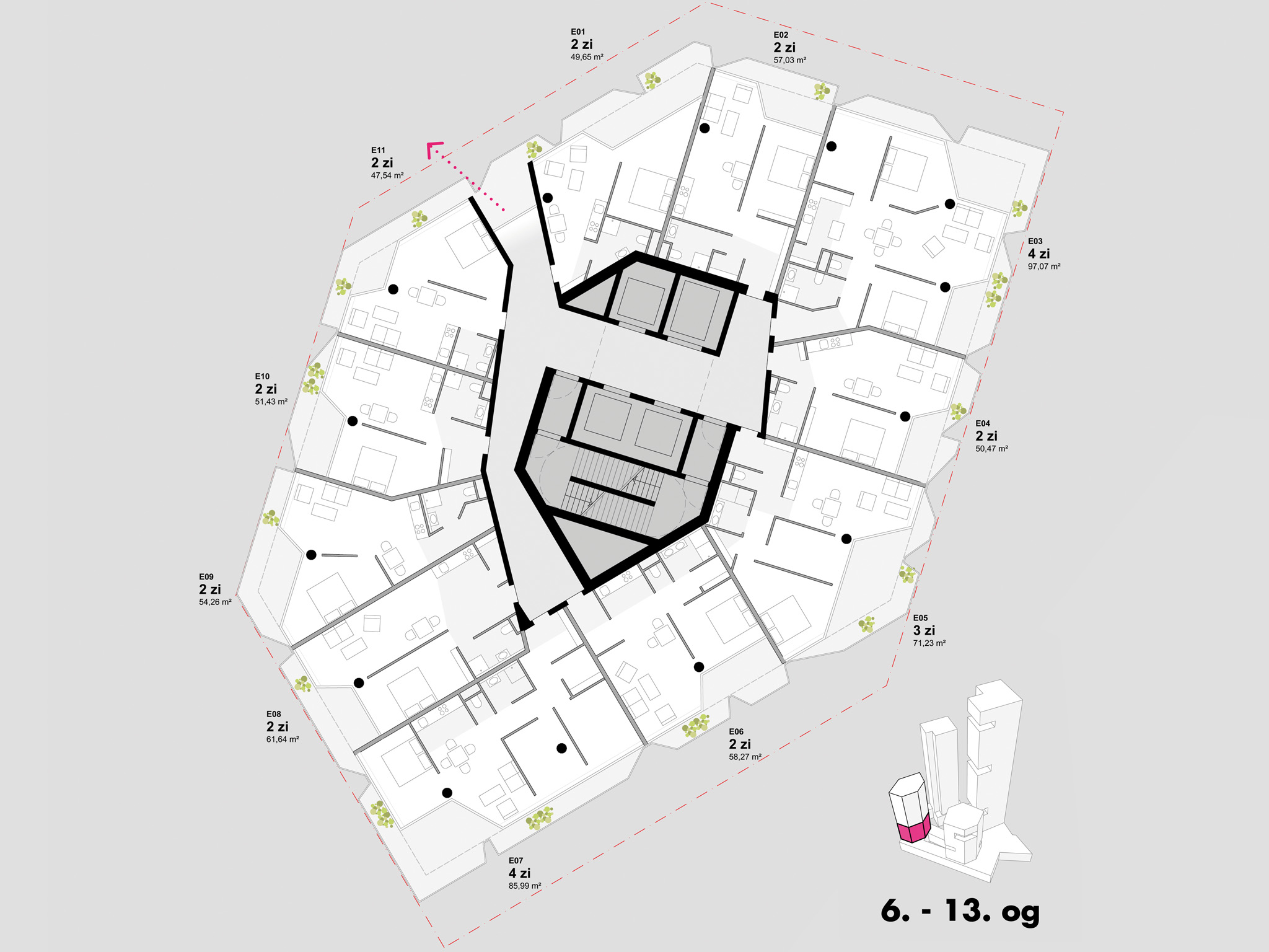 die türme bieten ihren nutzerInnen zahlreiche orte mit außenraumanbindung in besonderer qualität: