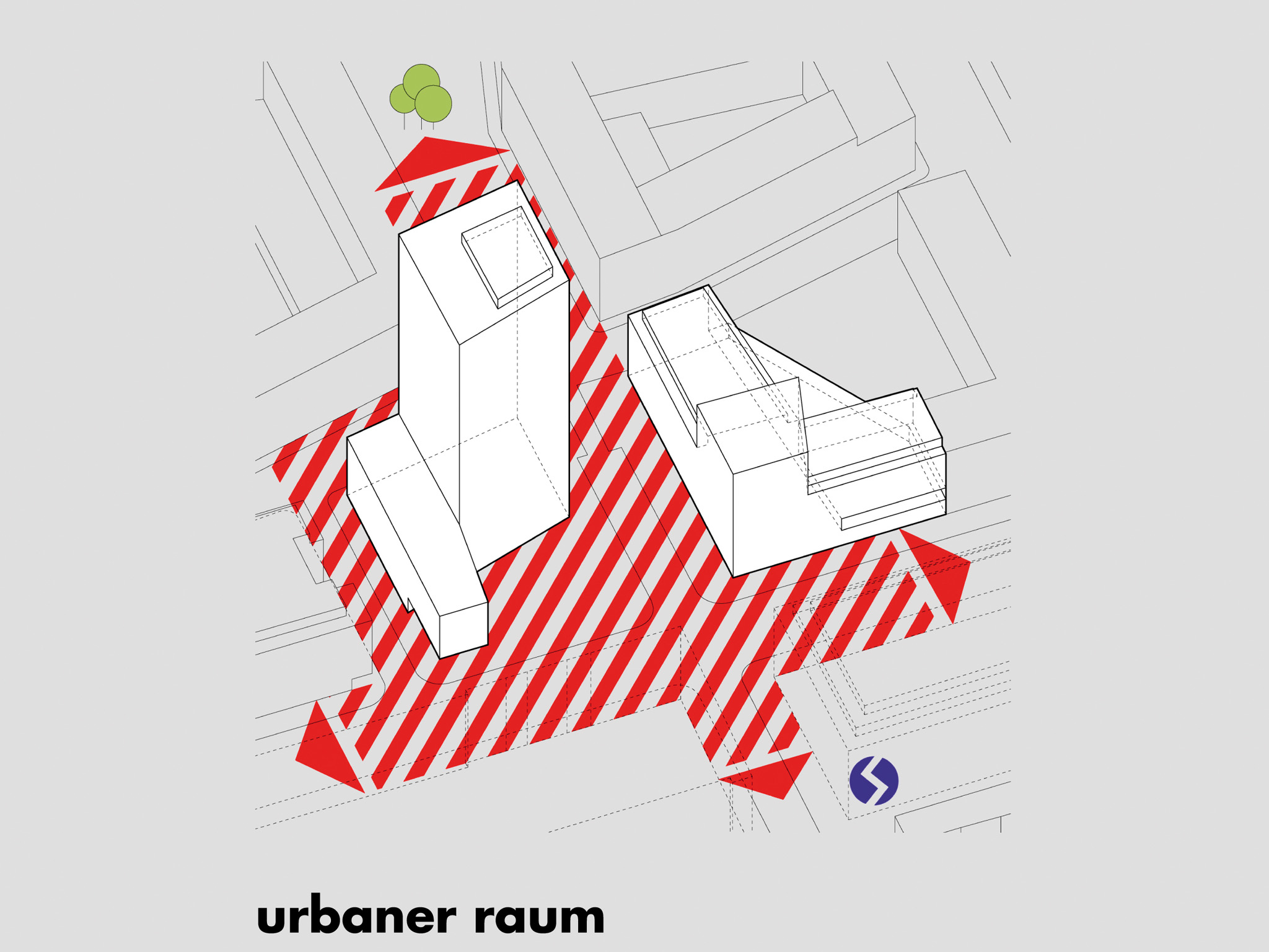 um das tor zum nodwestbahnhof areal klar zu markieren und großzügigen städtischen raum zu schaffen, wurde das hochhaus an der nordwestecke des bauplatzes dresdner straße 90 situiert. es ermöglicht einen urbanen entreeplatz‘, der als drehscheibe für das gesamte gebiet fungieren soll. der baukörper auf der dresdner straße 84 folgt der blockrandbebauung und markiert den schnittpunkt der achsen dresdnerstraße/traisengasse.