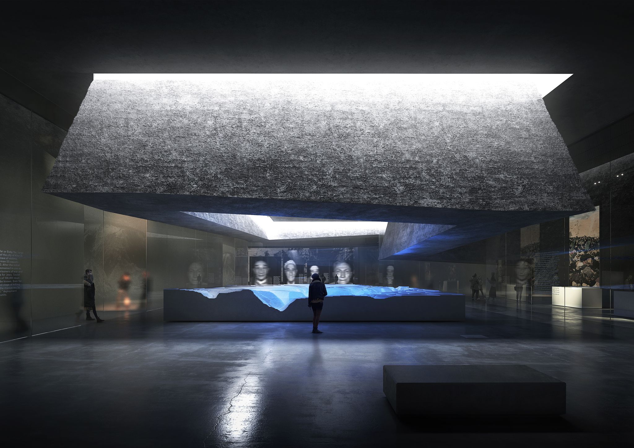 das design definiert die bedeutung des ortes neu und stellt eine neuinterpretation der räumlichen und zeitlichen dimension dar. es entsteht ein breiter dramaturgischer bogen, der die besucher zunächst im gegenwärtigen moment aufnimmt und sie für den ort sensibilisiert. erst dann werden sie in den dunklen abgrund der vergangenheit geführt und mit den tragischen historischen ereignissen konfrontiert. anschließend betreten die besucher langsam einen hellen und einladenden raum, der das gefühl einer hoffnungsvollen zukunft vermittelt, bevor sie wieder in ihren alltag entlassen werden. wesentlich ist hier die nichtlineare anordnung von gegenwarts-, vergangenheits- und zukunftsorientierten räumen. ihre ständigen verbindungen geben anlass zur hoffnung und sind zugleich warnungen.