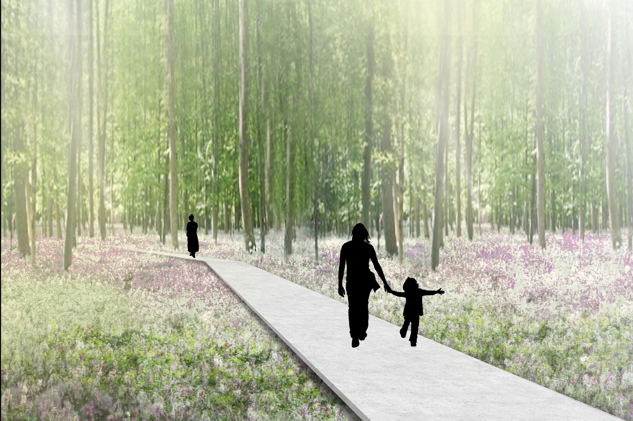 der respektvolle waldspaziergang ist das abschließende erlebnis des byhmc. der umliegende wald bietet den besuchern einen ruhigen raum, um ihre erfahrungen zu reflektieren und zu verarbeiten, bevor sie in ihren alltag zurückkehren. der emotionale gang auf scheinbar schwebenden stegen über die blütengesäumte waldlandschaft kann sich in ihrer wirkung stark von dem des ankommens unterscheiden. der wald erscheint nun in einem anderen licht, und der besucher könnte sich fragen: hat sich der wald verändert, oder ich mich?