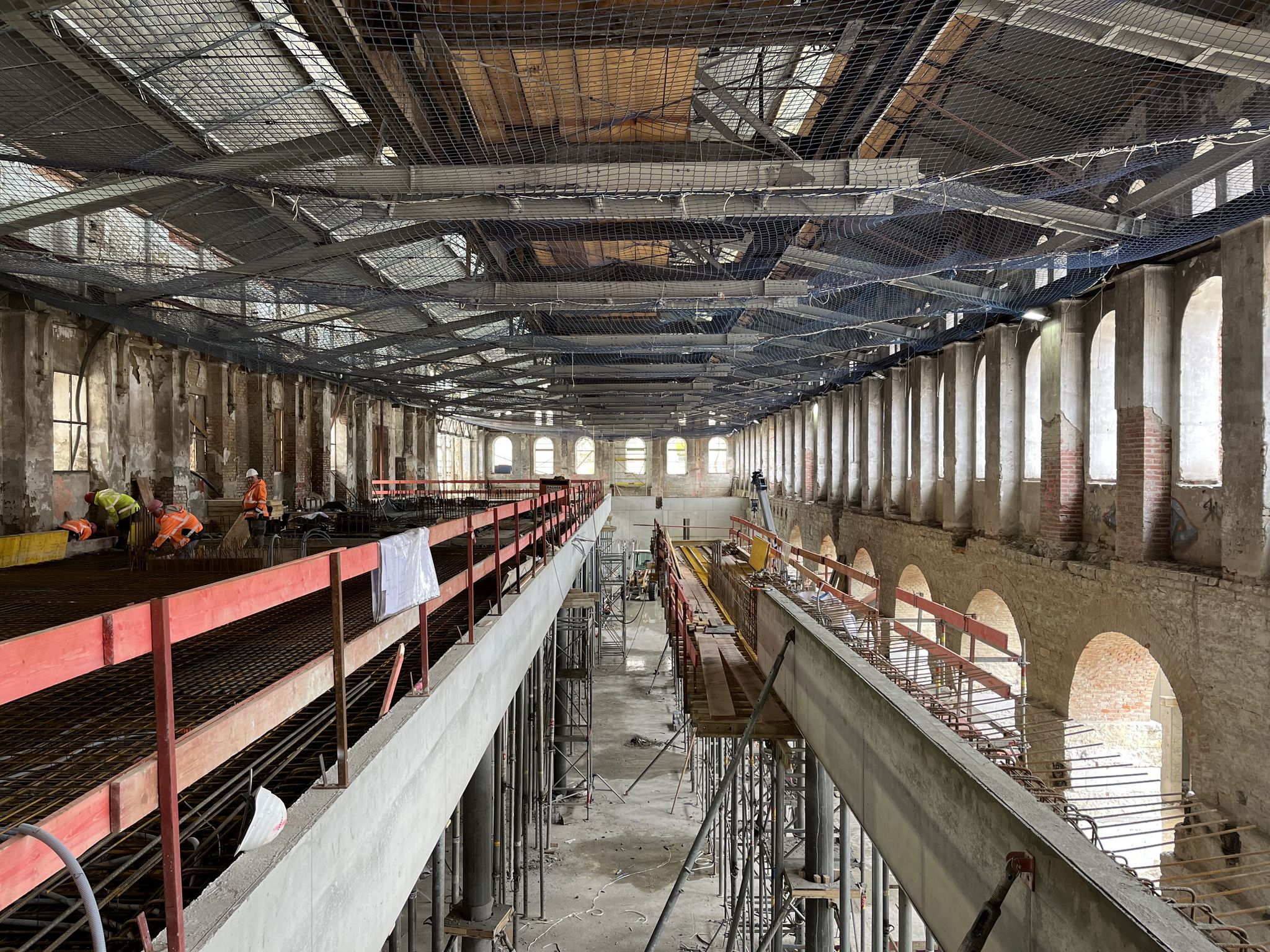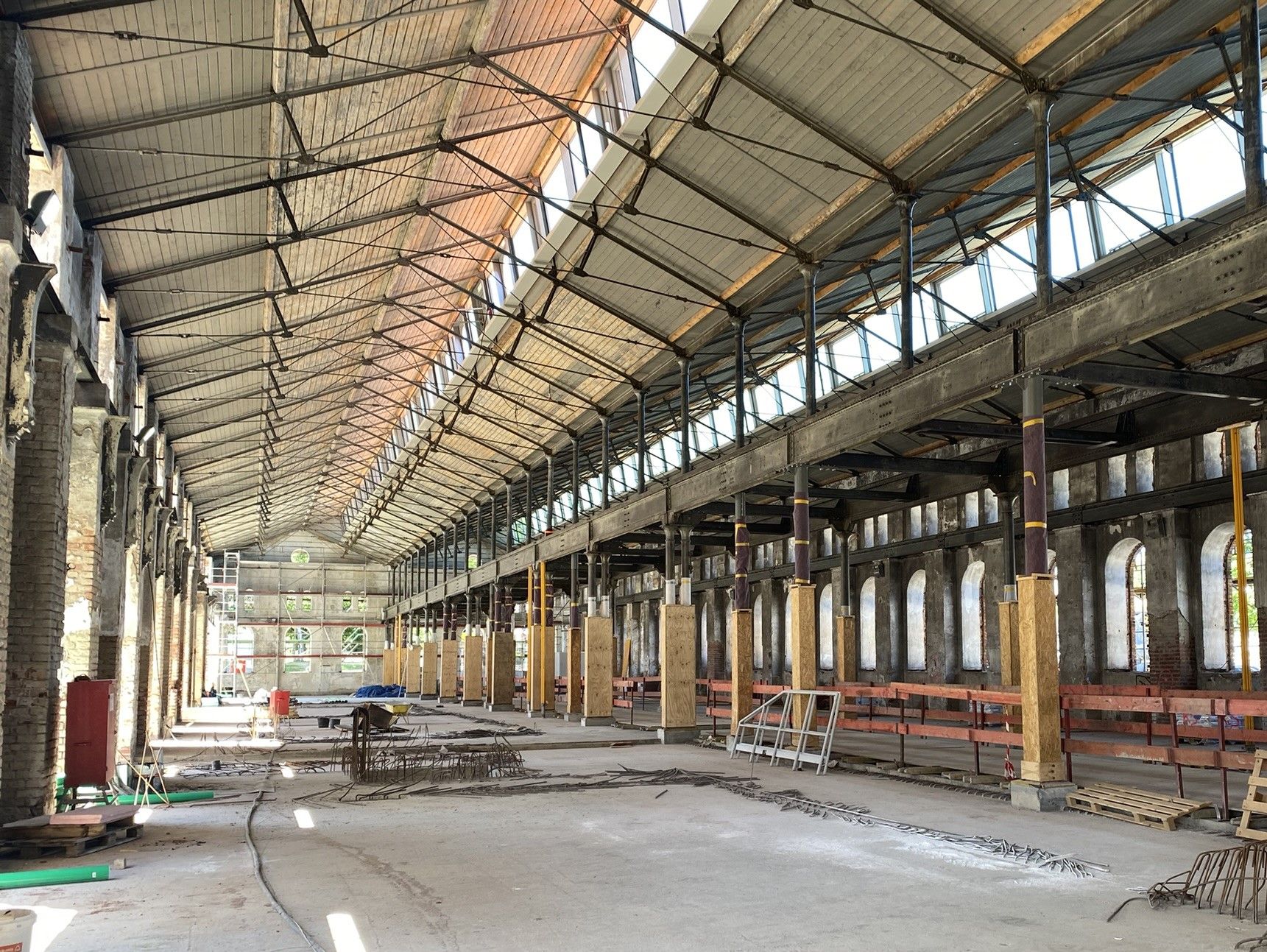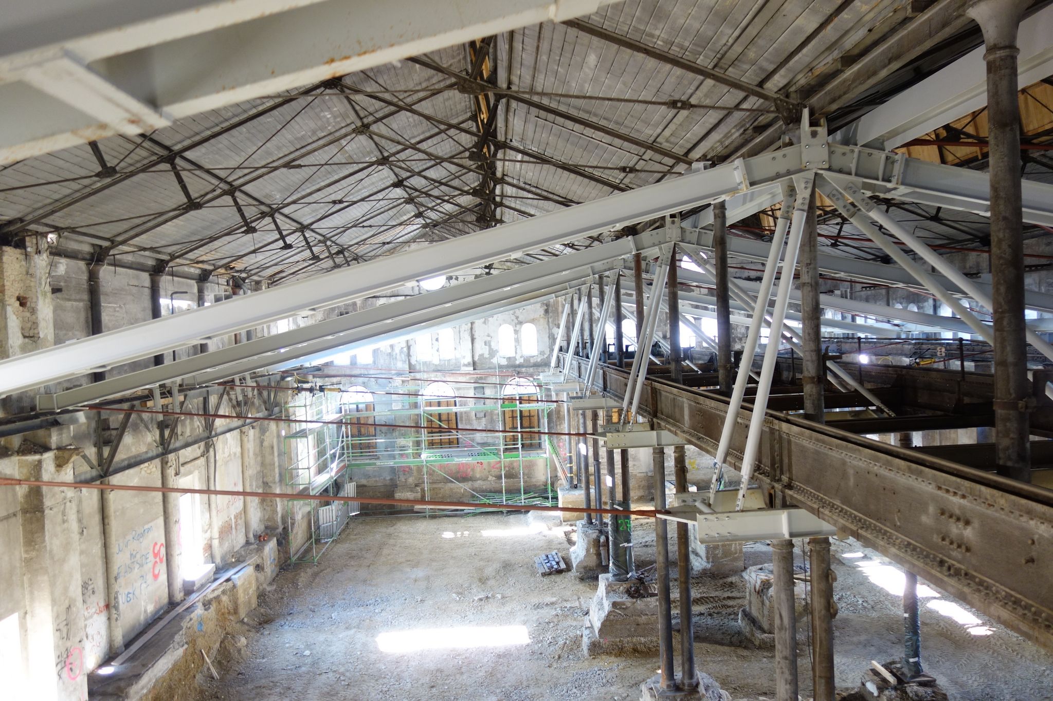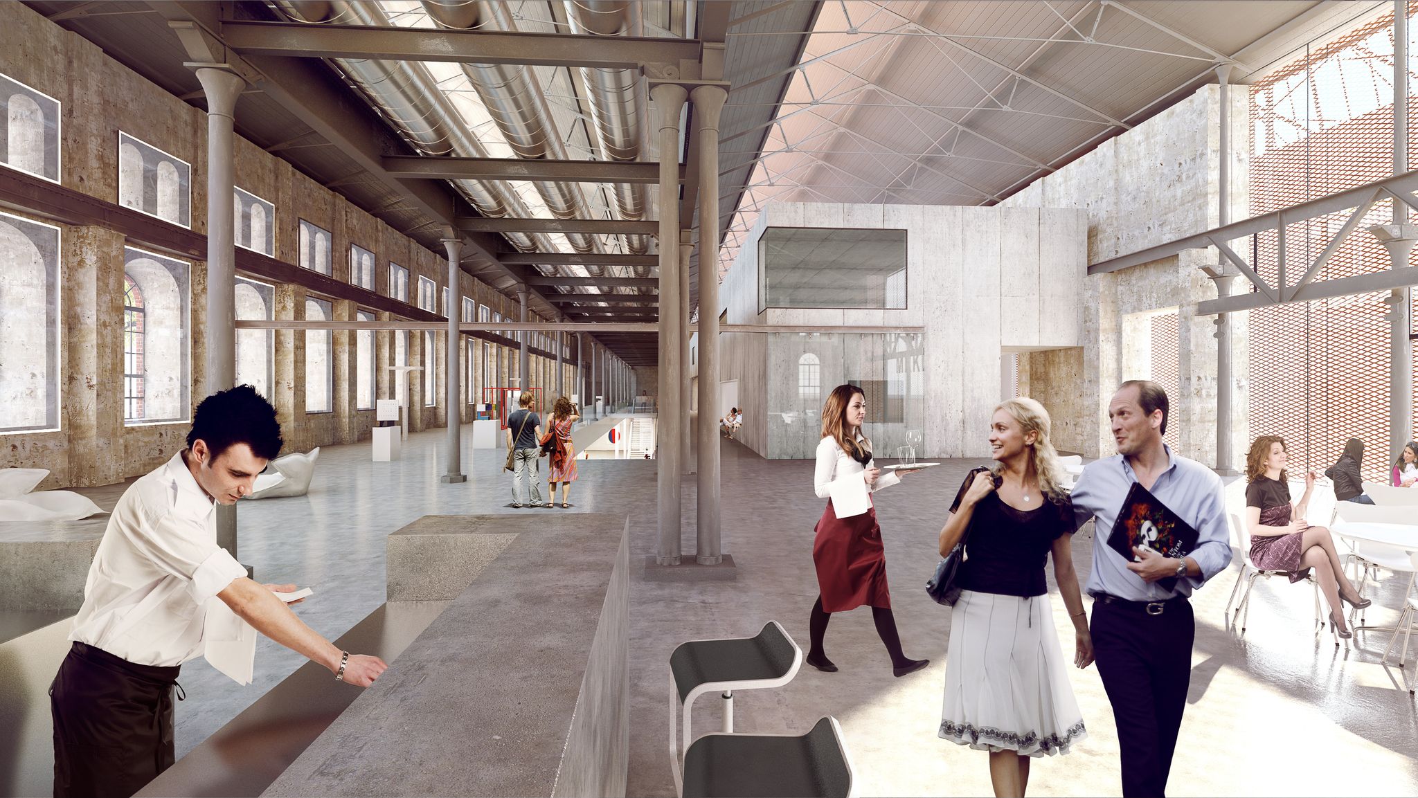 die raumqualität des backsteinbaus ist geprägt von filigranen, detailreichen strukturen der kranbahn und des dachtragwerks und zeugnis einer wechselvollen geschichte. die industrielle ästhetik wird zeitgemäß in das neue architektonische konzept integriert, wodurch die historischen veränderungen am gebäude lesbar bleiben und ein vielschichtiges, neues ganzes entsteht.