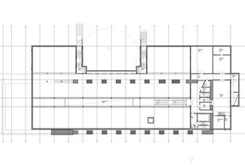 der ausstellungsraum des museums, der sich über ca. 2000 m² unter der halle und dem vorplatz erstreckt, bietet flexible nutzungsmöglichkeiten und erfüllt die bedürfnisse eines zukunftsorientierten museumsbetriebs. die kunst wird dabei in den mittelpunkt gestellt, ohne in kreativen konflikt mit dem bestehenden gebäude zu treten. nebenfunktionen wie garderobe, lager, küche, anlieferung, toiletten und erschließung sind in einem klaren, zentralen baukörper im erdgeschoss untergebracht. verwaltung und museumspädagogische räume befinden sich auf der galerie.