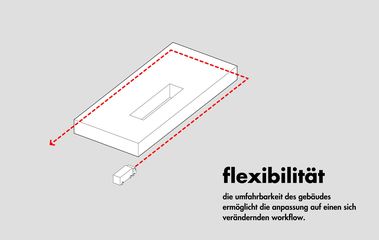 bei einem hohen gestaltungsanspruch dominiert die funktion die bereiche außenanlagen, fassade, funktionsabläufe, gebäudetechnik, arbeitsumfeld. dem wird eine sinnliche erfahrung entgegengestellt. der urwald im innenhof als kontrast zur alltäglichen exaktheit der wissenschaftlichen arbeitswelt, als energetisches zentrum und herz des betriebes.