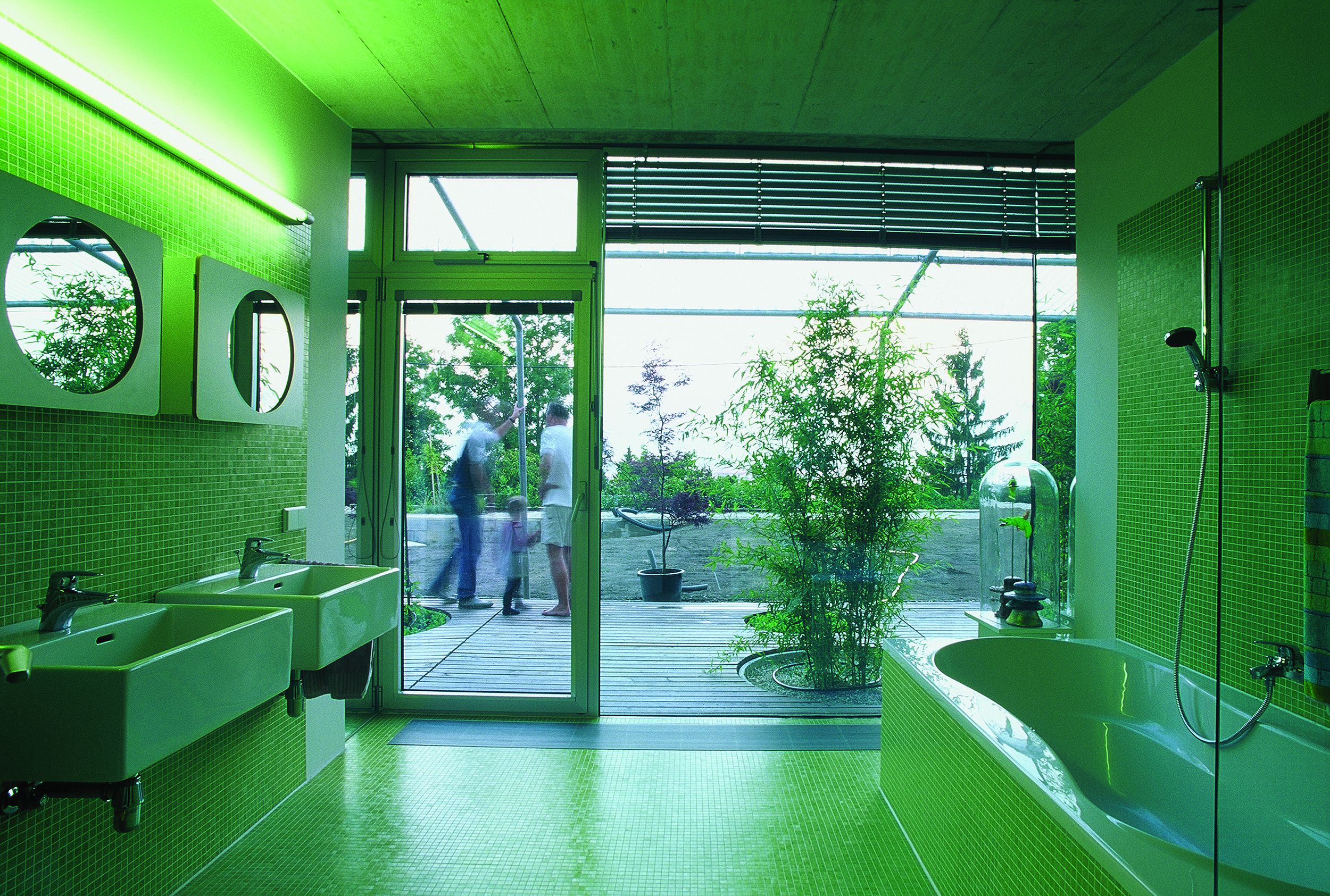 das leben mit dem garten ist alltagsqualität, die besonders wertvoll ist. den nachbarn nicht durch ein hohes gebäude die aussicht zu verstellen bedeutet respektvollen umgang mit der umgebung. beide argumente führten zu einem flachen, breiten haus mit höhepunkten.