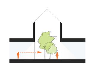 durch die materialität des betons und die überdeckung der gesamtfläche mit einer sehr kräftigen humus-schicht können die vorteile eines trägen baukörpers gut genutzt werden. tages- und jahreszyklen werden sehr langsam abgefedert.