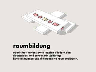 oberlichter, atrien sowie loggien gliedern den clusterriegel und sorgen für vielfältige lichtstimmungen und differenzierte raumqualitäten.